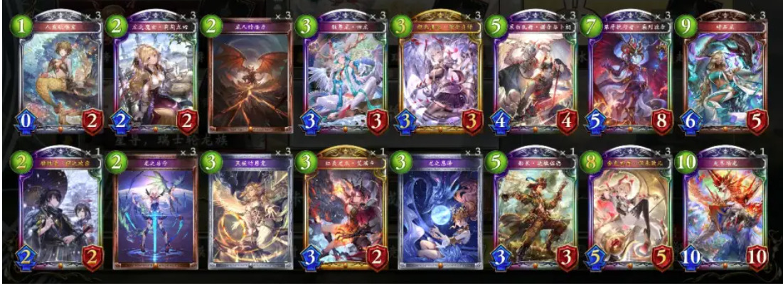 1.因为影之诗,尤其是国服影之诗没有能够参考的相应数据,且本人在内网没有太多抓取高分选手构筑的渠道,所以本文章内对于卡组的统计和梯度排序主要来自于JCG、SNC、rage等赛事和gw、shadow master等网站,以及星野饼美的每日影之诗、yokidou的连胜日报等。其中的构筑不一定适合天梯,请自行更改。