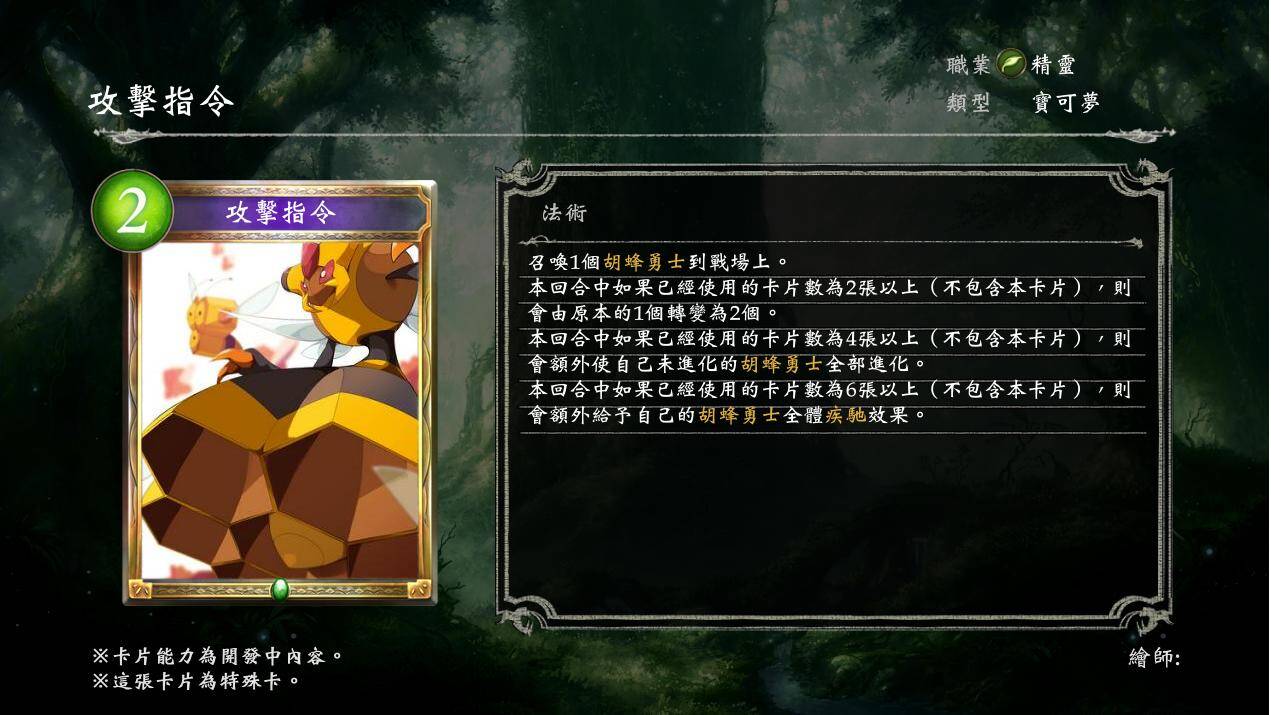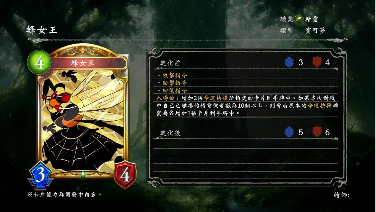 本回合中如果已经使用的卡片数为4张以上(不包含本卡片),则会额外使自己未进化的胡蜂勇士全部进化。