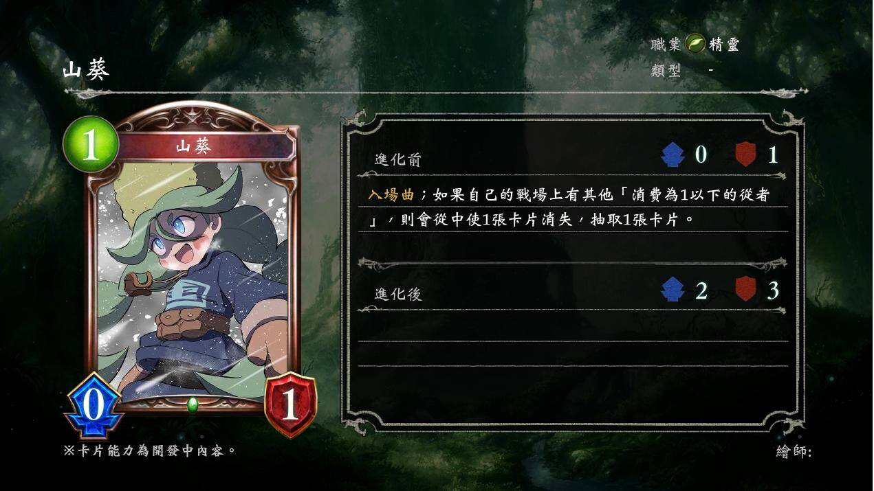 当消费为1以下的精灵从者进入自己的战场时,增加1张与之同名的从者卡到手牌中,此效果每个自己的回合仅限发动1次。