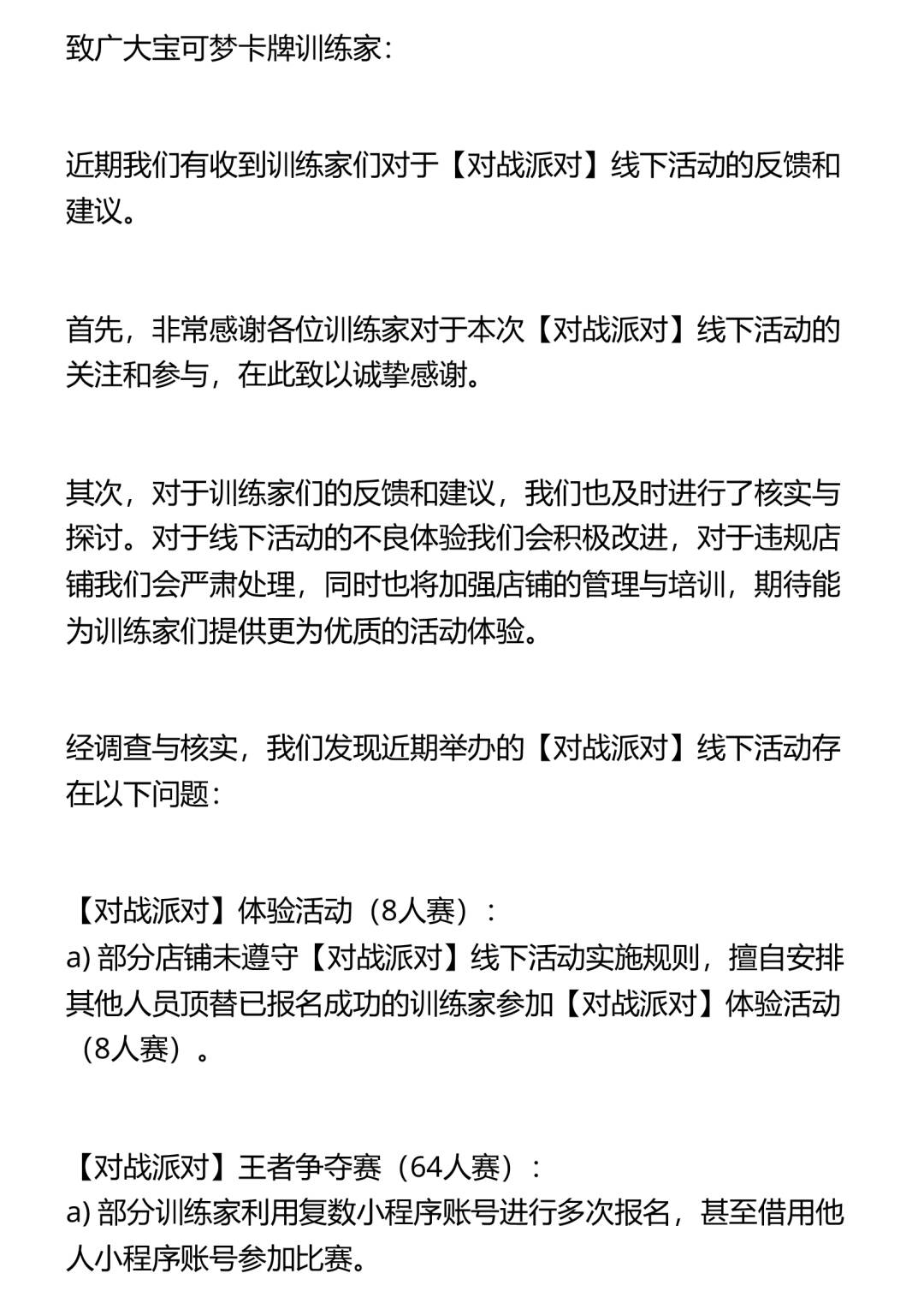有关【对战派对】线下活动的调整公告
