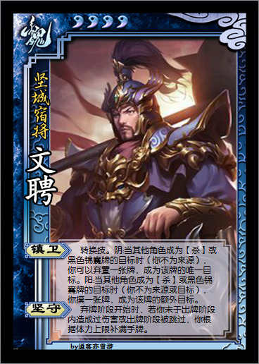 曹真的能力是减少敌人出【杀】,而文聘的能力是转移敌人对队友使用的【杀】,他们两人还有些般配呢。在敌人回合开始时,曹真可以减少敌人出【杀】,若不成功,当敌人攻击曹真时,文聘可以转移目标,或者让这张牌回到敌人手中。他们两人都有不错防御能力,并且还能互相保护。
