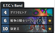 典狱长:用来打圣物瞎和德鲁伊内战,打圣物瞎的时候可以挡住塞斯诺的斩杀,但是打内战时由于没有换家,所以使用时要谨慎,而且典狱长打出免疫buff后,再下章鱼巨型会占满格子,会很尴尬,使用时要注意。