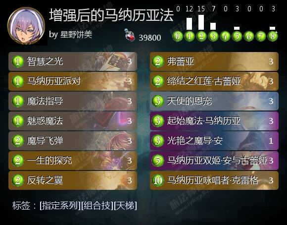 马纳历亚双姬·安与古蕾娅是这套牌的核心与制胜手段。在她被增强后,这一思路有了更强的苟活能力,也不再惧怕消失、回手等解场手段干扰了。