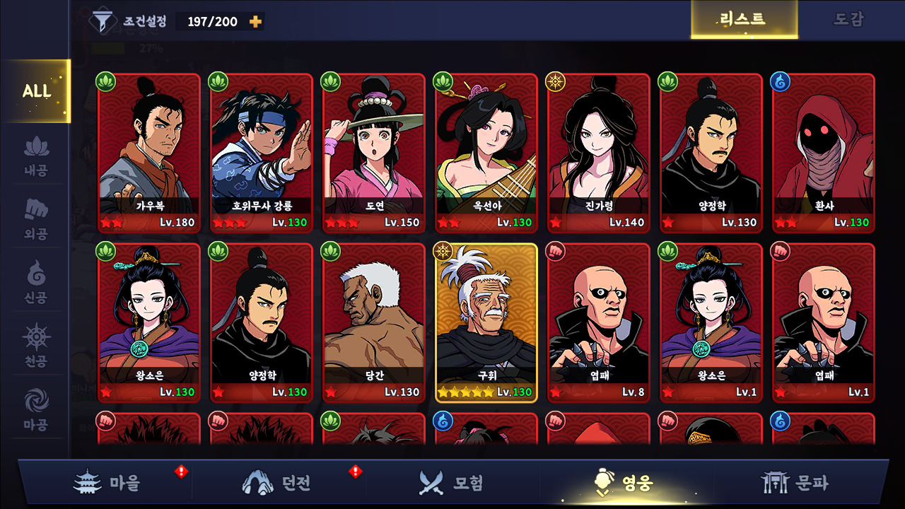 在这个IP衍生游戏中,英雄被分为内功、外功、神功、天攻和魔攻五种类型,每种英雄都会有其独特的技能和能力。用户可以在游戏中收集各种英雄,组成自己的队伍,并去挑战副本和各种其他活动内容。