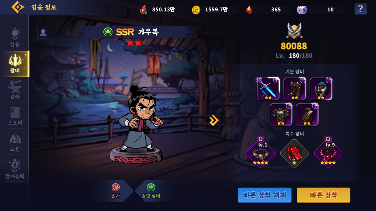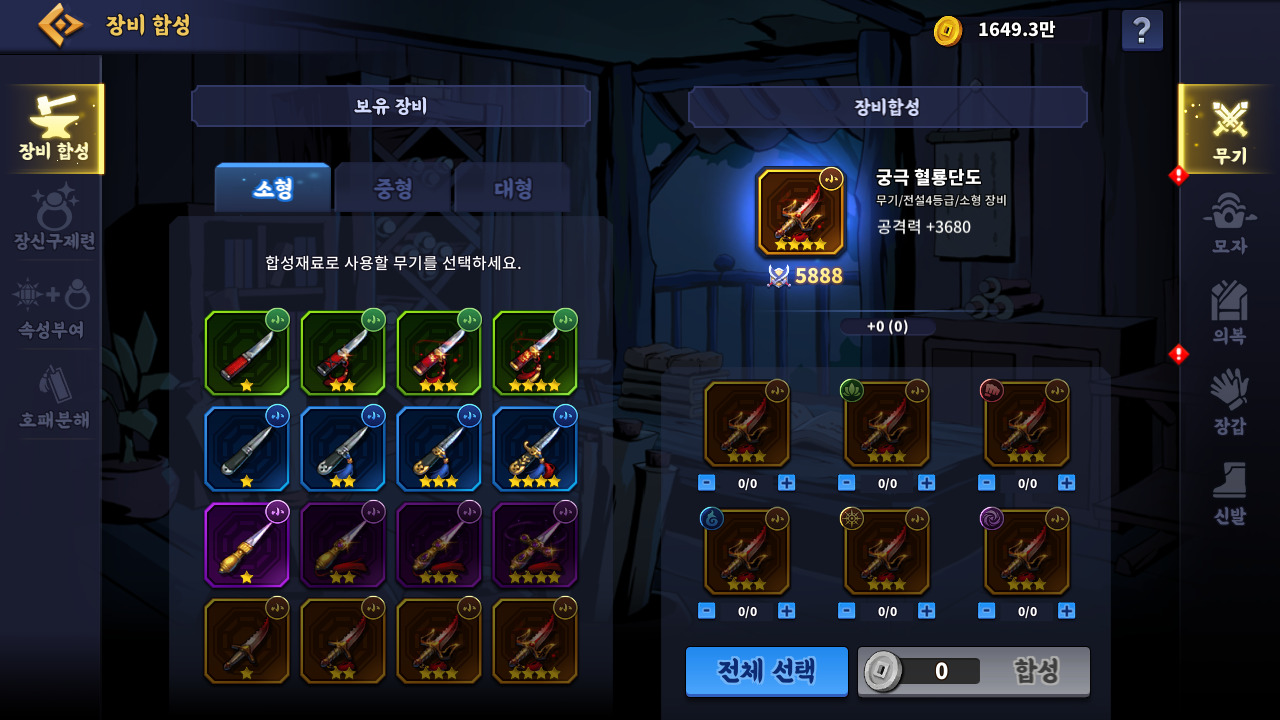玩家可以随时佩戴或拆卸装备,这样就可以更好地适应不同的战斗场景和敌人属性。玩家也可以通过装备合成来提升装备星级,使其属性更加强大。