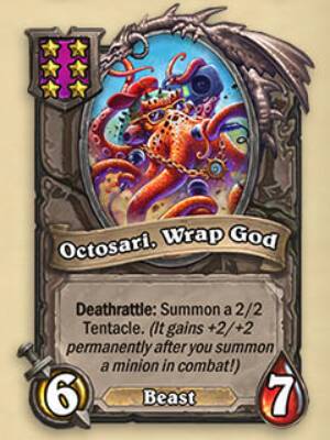 - 6星6/7野兽,亡语:召唤一个2/2的触须。(战斗阶段中,在你召唤一个随从后,触须永久获得+2/+2)