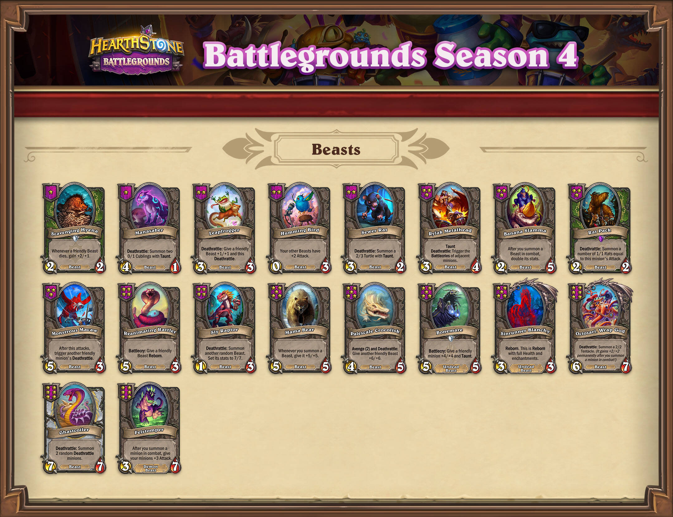 26.2战棋大更新,随从池更迭力度空前,新增、移除、调整近60多张,有必要分门别类地整理。野兽随从池变化如下。