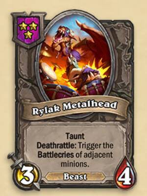 - 3星3/4野兽,嘲讽,亡语:触发相邻随从的战吼