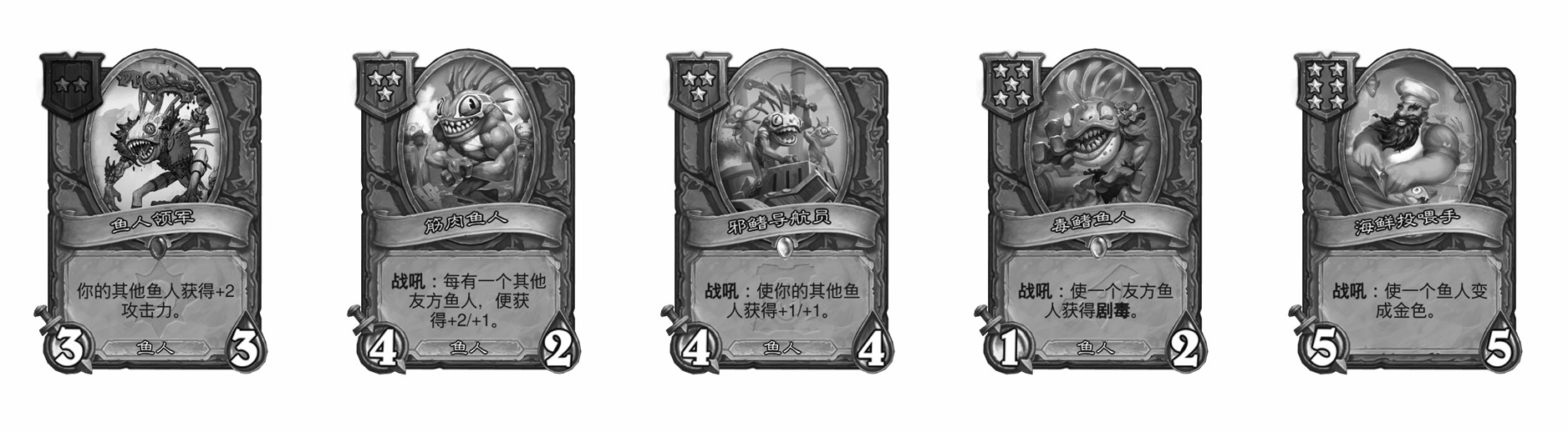 - 4星6/2鱼人,亡语:仅为本战斗阶段召唤你手牌中生命值最高的随从