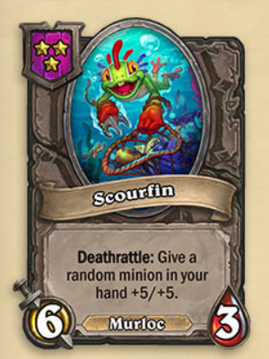 - 3星6/3鱼人,亡语:随机使你手牌中的一个随从获得+5/+5