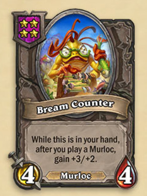 - 4星4/4鱼人,当本牌在你手牌中时,在你使用一张鱼人牌后,获得+3/+2