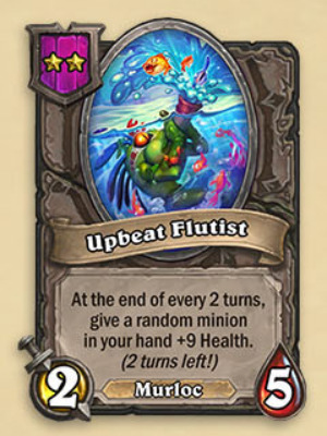 - 2星2/5鱼人,在每2个回合结束时,随机使你手牌中的一个随从获得+9生命值(还剩2回合!)