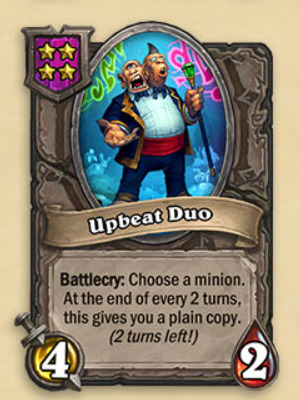 - 4星4/2,战吼:选择一个随从。在每2回合结束时,本随从使你获得一张原始版复制(还剩2回合!)