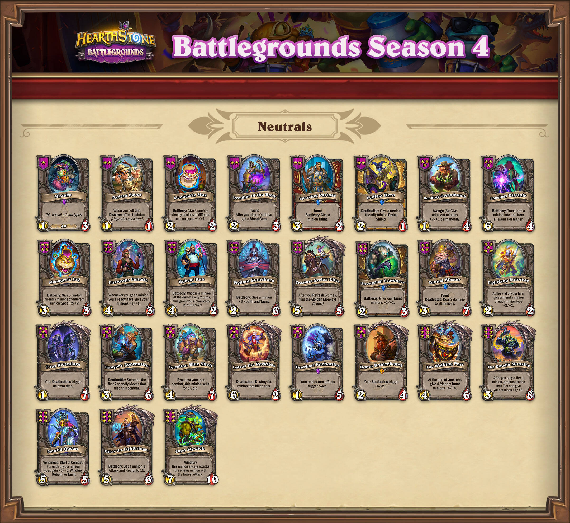 26.2战棋大更新,随从池更迭力度空前,新增、移除、调整近60多张,有必要分门别类地整理。中立随从池变化如下。
