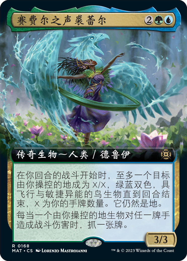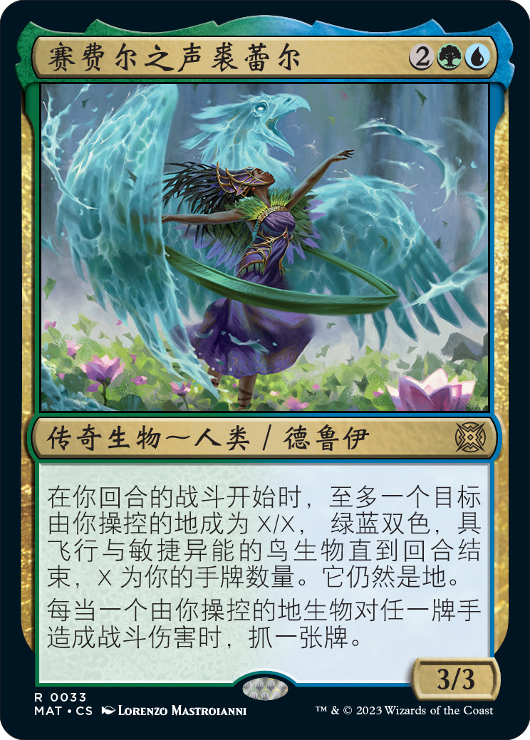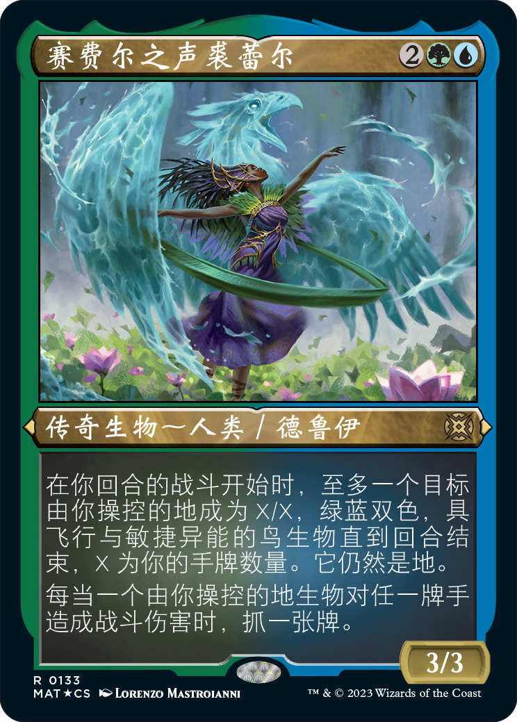 前往本地游戏店购买一盒邪军压境:终战回响终曲补充包展示盒或终曲聚珍补充包展示盒,即可获得一张「买一盒」赠卡赛费尔之声裘蕾尔——赠完即止。
