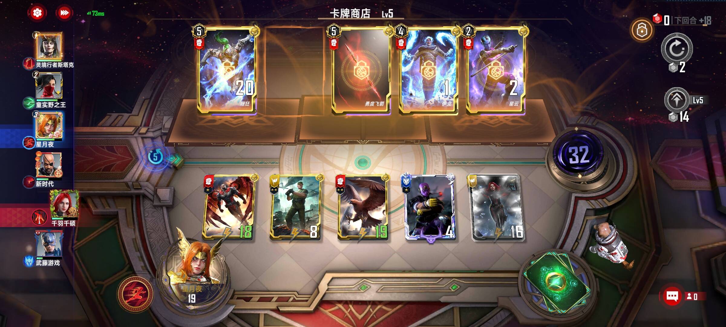 钢铁侠的八锁技能也是只有三个,那剩下的一个技能位自然是带机甲部署,完美的搭配鞭狂,5费的另外位置我带的万能,之前试过响尾蛇导弹,根本刷不起来。万能一方面能搭配制式装甲的技能让猎鹰每回合的加成翻倍,另一方面是红队,挂上电磁长鞭,也能很好的养鞭狂或者拿到鞭狂科技技能给锁定卡组加buff