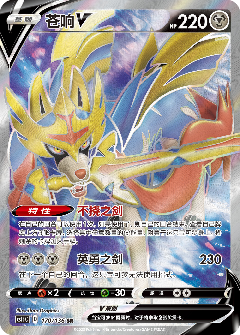 特性【球场跑者】使闪焰王牌V灵活性十足。只要场上有竞技场,闪焰王牌V撤退时所需要的能量就会全部消除,尝试用它的灵动去打乱对手的节奏吧。