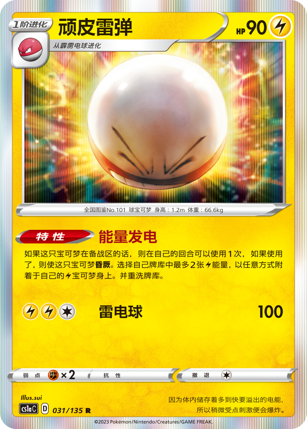 虽然在使用特性【能量发电】后顽皮雷弹会陷入昏厥,但训练家可以从牌库中选择最多2张雷属性能量以任意形式附着给自己的雷属性宝可梦,时刻保持能量充足。而进化熏香则能从牌库里选择一张进化宝可梦加入手牌,加速宝可梦的成长。