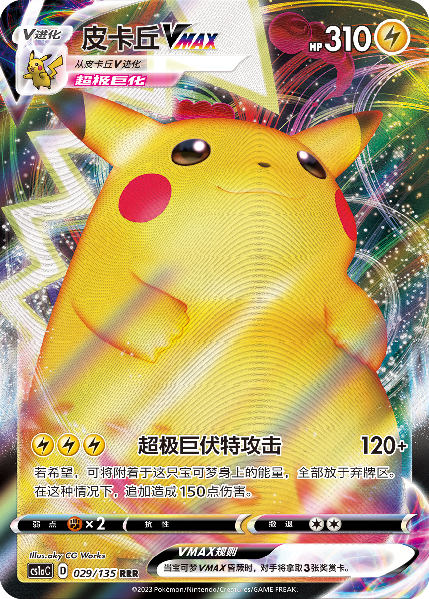 而在进化为皮卡丘VMAX后,其HP提升至310点,让它在战场上傲视群雄。