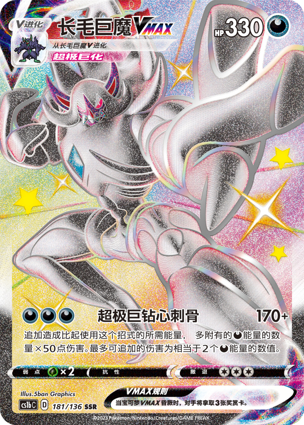 全新的宝可梦VMAX中便可能出现RRR卡牌,卡牌经过表面特殊加工,更加凸显宝可梦VMAX的强大魄力。