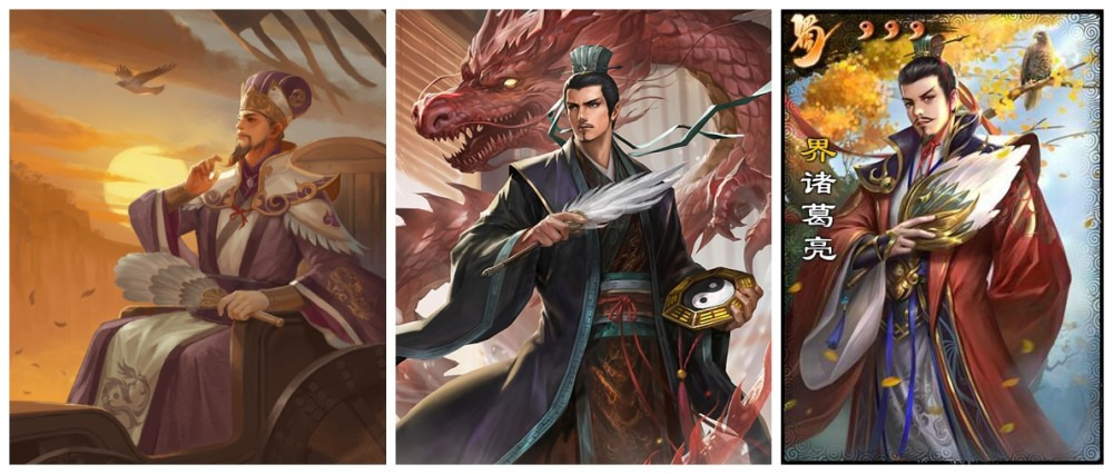 诸葛亮也是三国杀的老武将了,他的形象有很多种,其中界卧龙诸葛的皮肤颜值最高,也就是图片里中间那位。作为卧龙凤雏之一,诸葛亮一直和庞统比较,奈何庞统的颜值太低,无形之中帮了诸葛亮一手。而界卧龙诸葛更是将颜值推上了巅峰,本人一直怀疑界卧龙诸葛的画像是按照金城武画的。菱角分明的脸,坚定的眼神,性感的山羊胡,放在现代绝对是妥妥的帅哥。