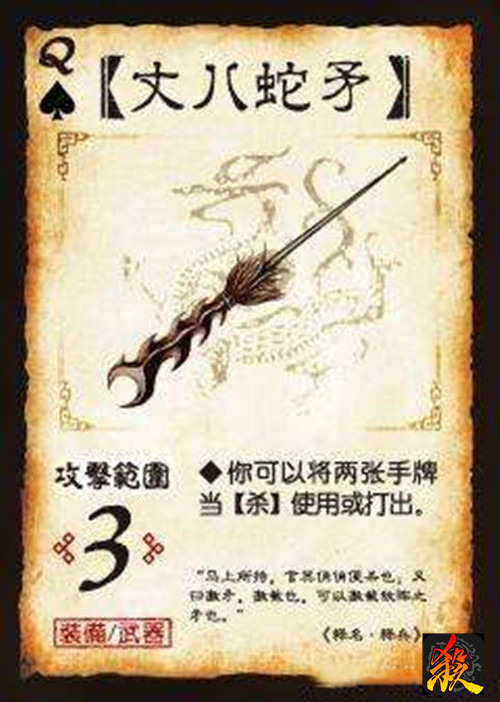 要论三国杀中,哪个武器最强,大家都会说诸葛连弩。我丈八蛇矛不服!丈八蛇矛在《三国杀》根本没得到它应有的待遇!众人一只知诸葛连弩无限出杀,二只知青釭剑破防直上,三只知寒冰剑免伤弃牌。岂知丈八蛇矛重要作用乎?!