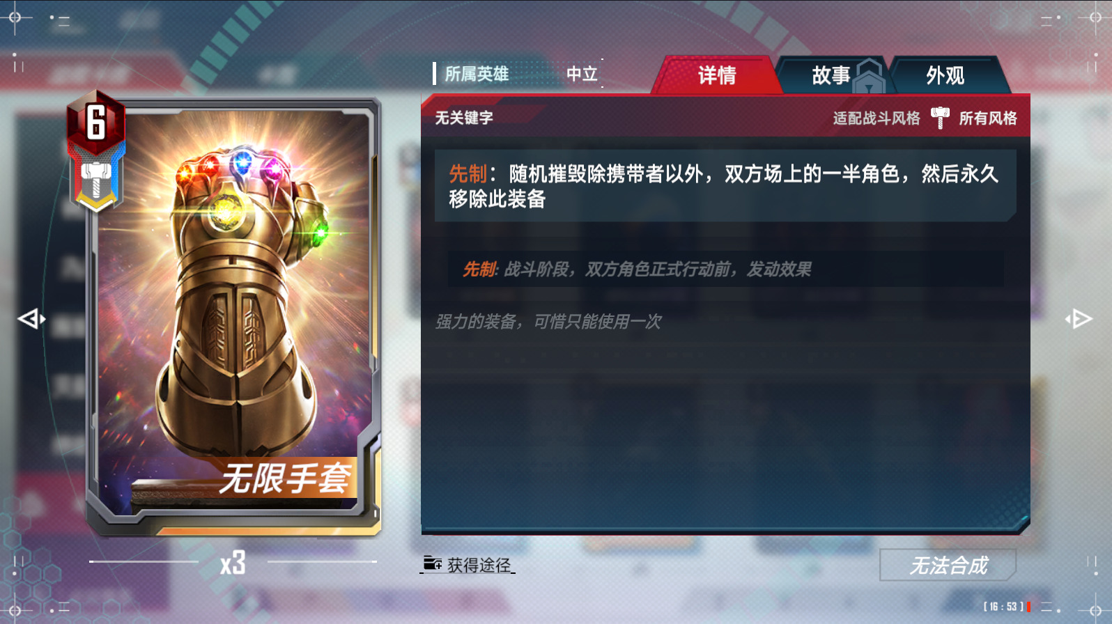 (8)、紧急缩小的使用是这个游戏最考验技术的之一,大部分时候紧急缩小在对阵星爵的时候,或者第六、七回合最弱的时候集中使用数个,并不会去随便使用,用好紧急缩小,是玩好漫威对决的基本功;