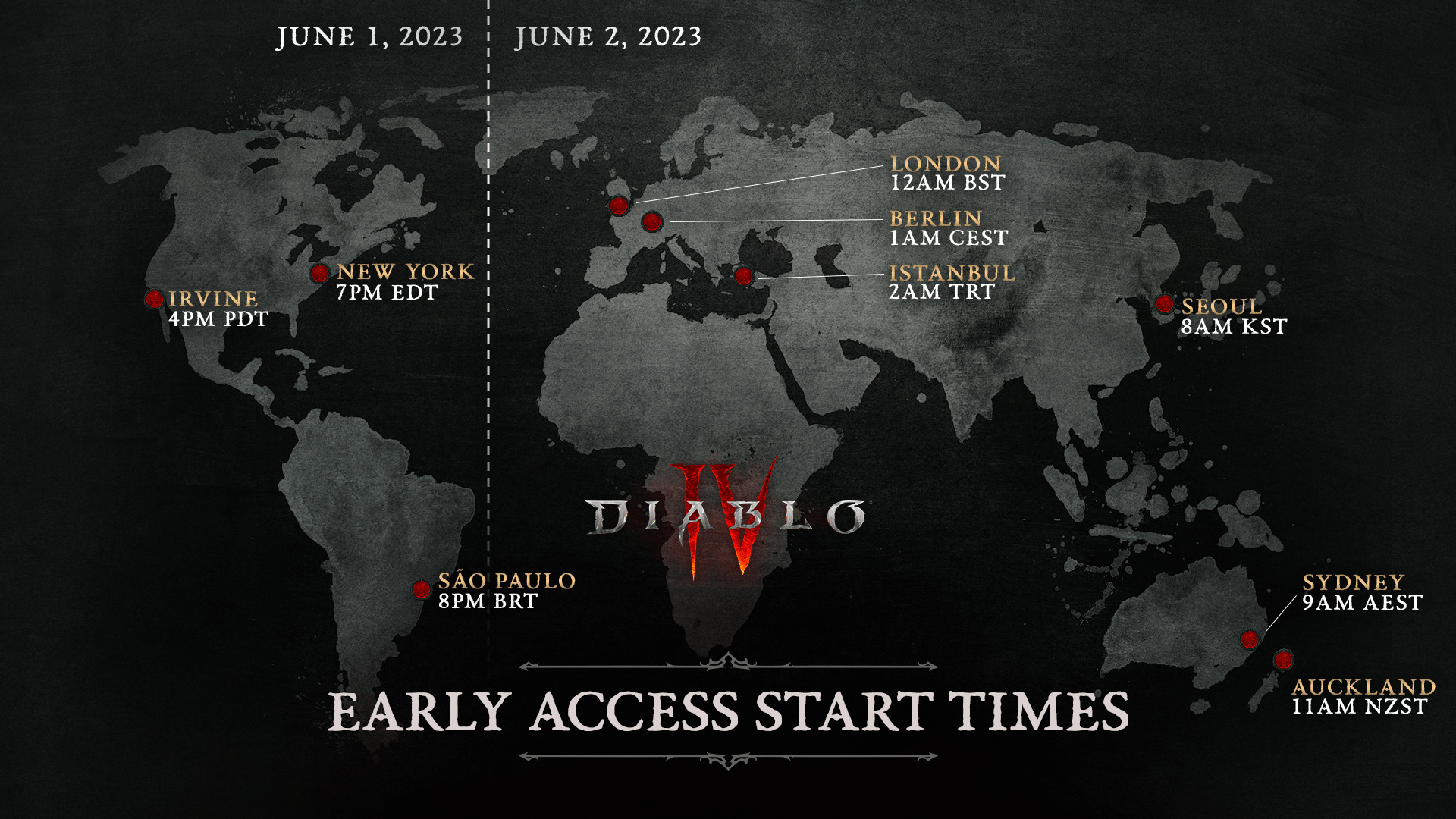 暴雪官方公布了《暗黑破坏神4》的全球解锁时间表以及预载时间。