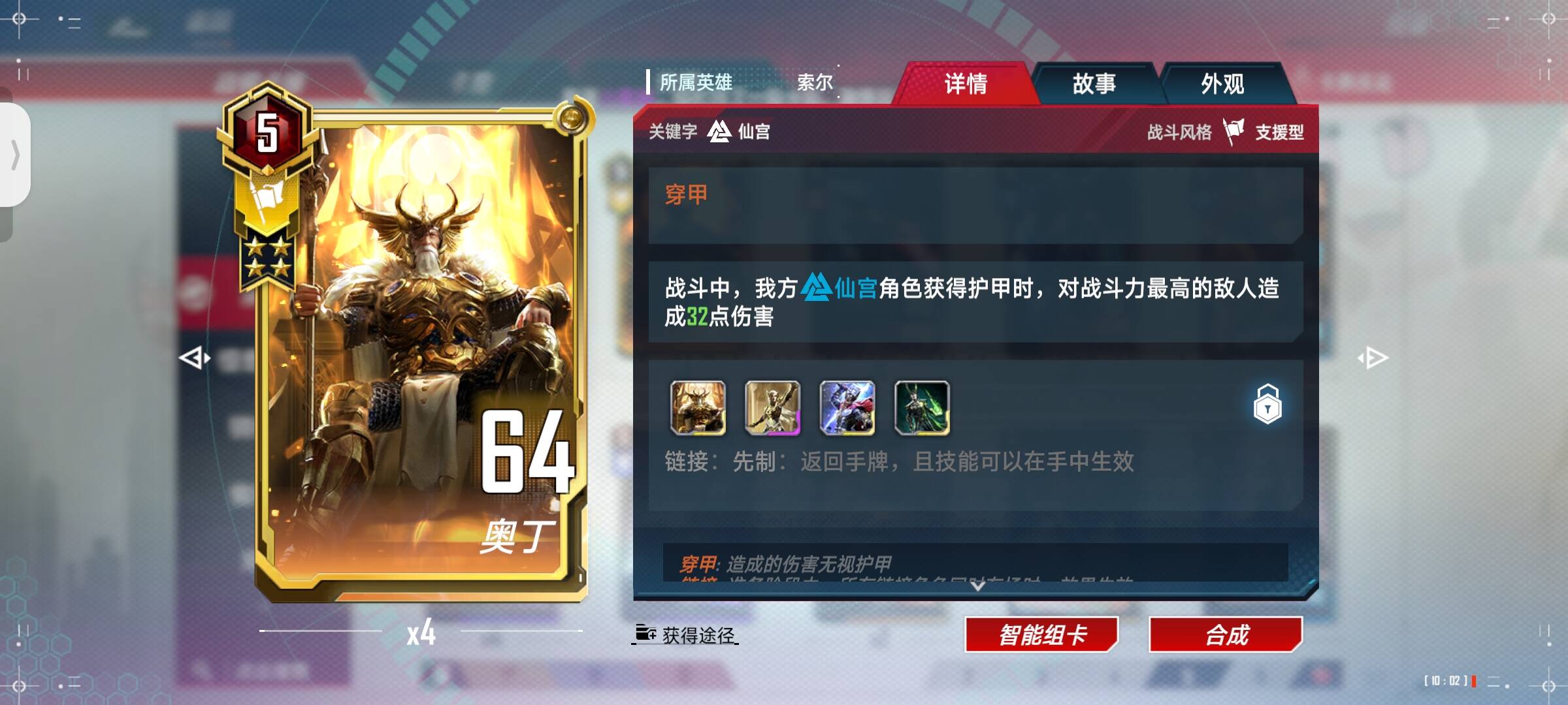 奥丁的打雷加强了,4星奥丁一下雷32穿甲伤害,值得占据一个位置。新索一般是勇士链接摸到闪电护身,才买,可做一个核心。