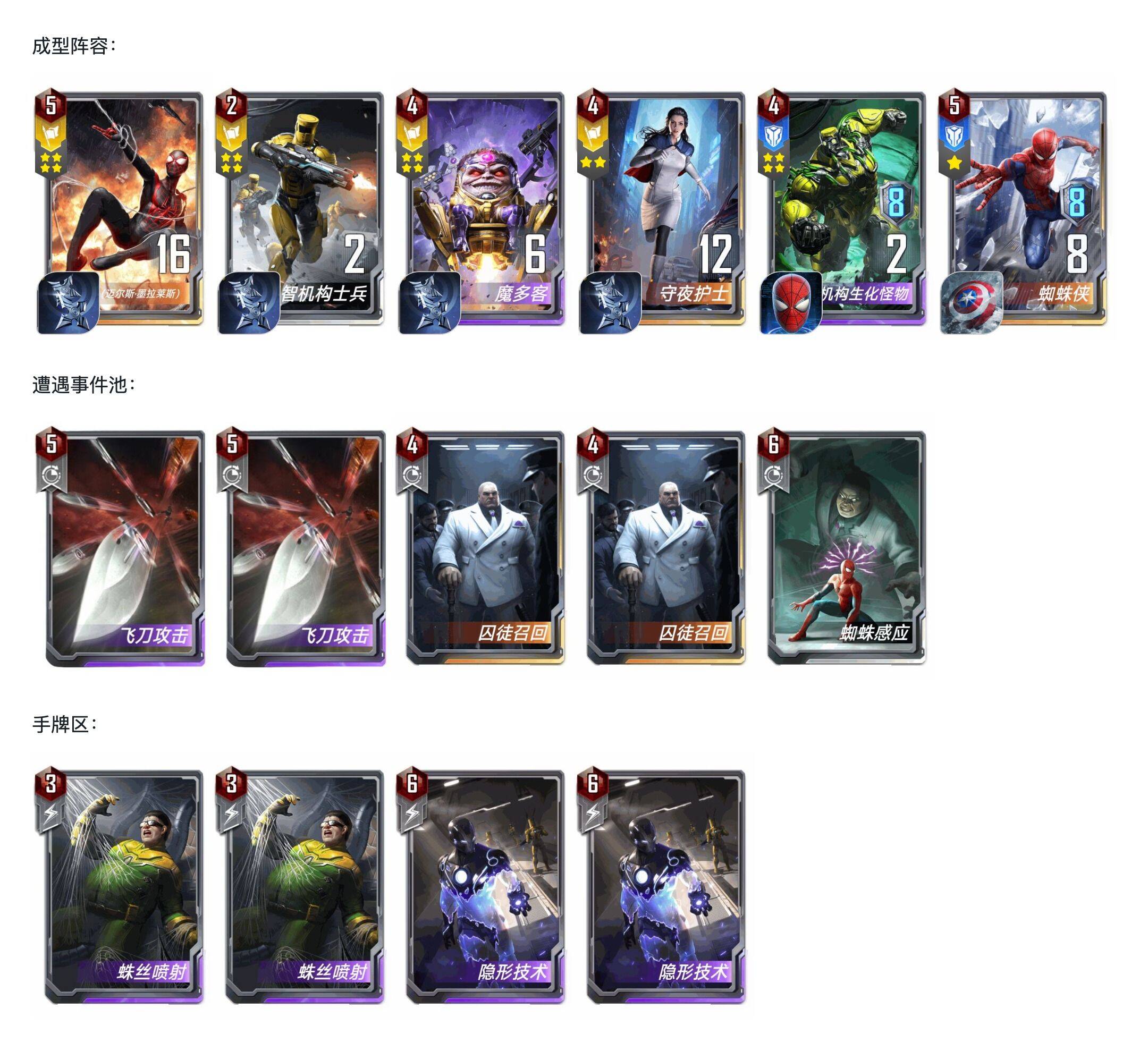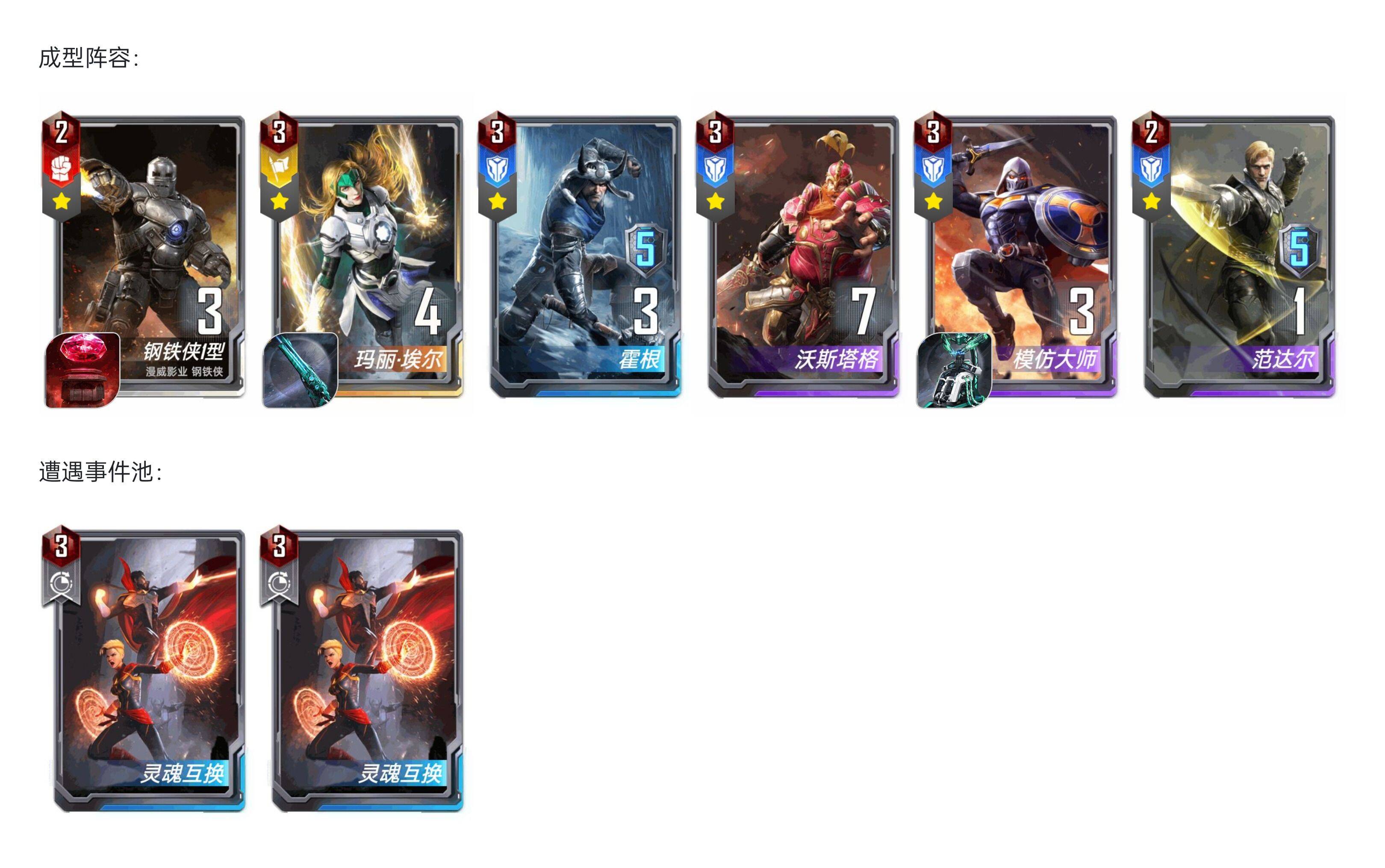 因为钢铁侠3费带了改良牌,所以找秘闻的任务就交给惊队3费的灵魂互换和中立3费红宝石,这里统一说,就是这两个秘闻卡位要各带3张,理由是假如你拿了同一种两张,卡池里还有第3张,仍能保证有两个卡位出秘闻牌,不至于一直搜不到第3张秘闻牌的情况。