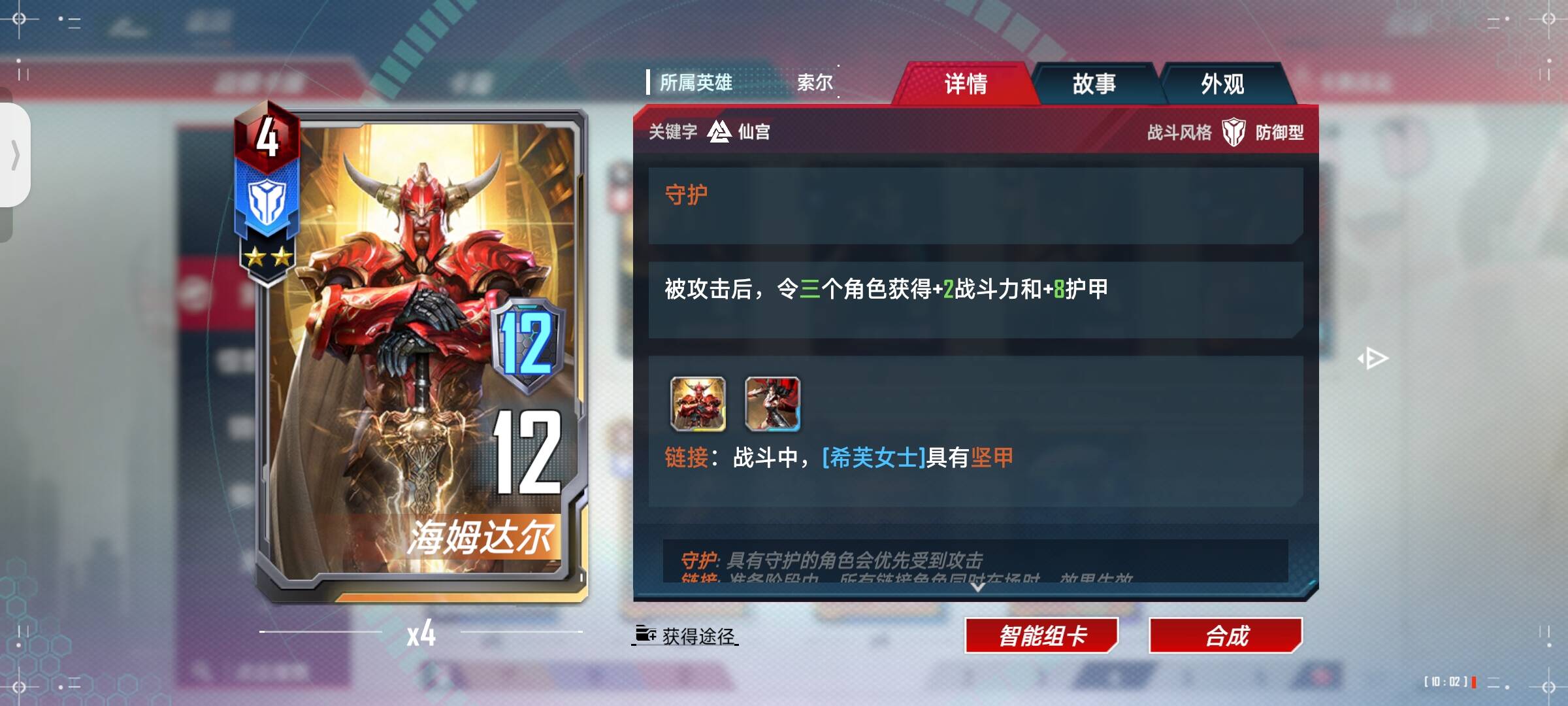 核心希芙只做3星,不带4张。海姆达尔我开始玩的时候带4张,玩了多局后,我感觉得合4星多花8费有点贵,也不是刚需,小费的仙宫角色没那么快刷完的,所以改带2张海姆感觉更好,特别是停4本搜卡时,8块钱留给早点搜齐3星希芙更有用,留给买策略角色卡更有利。