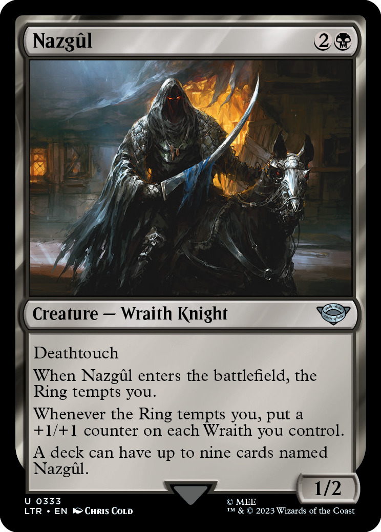 - 1 张传统闪的魔戒牌框银(23.3%),无边框场景铁(41.8%)或银(32.6%),或一张戒灵(2.3%)