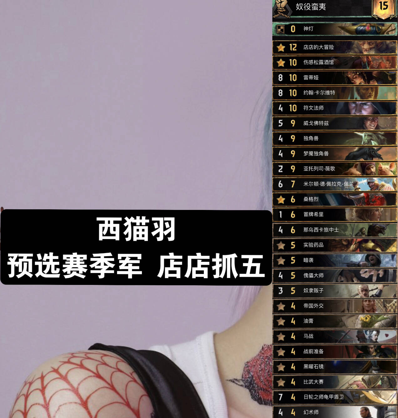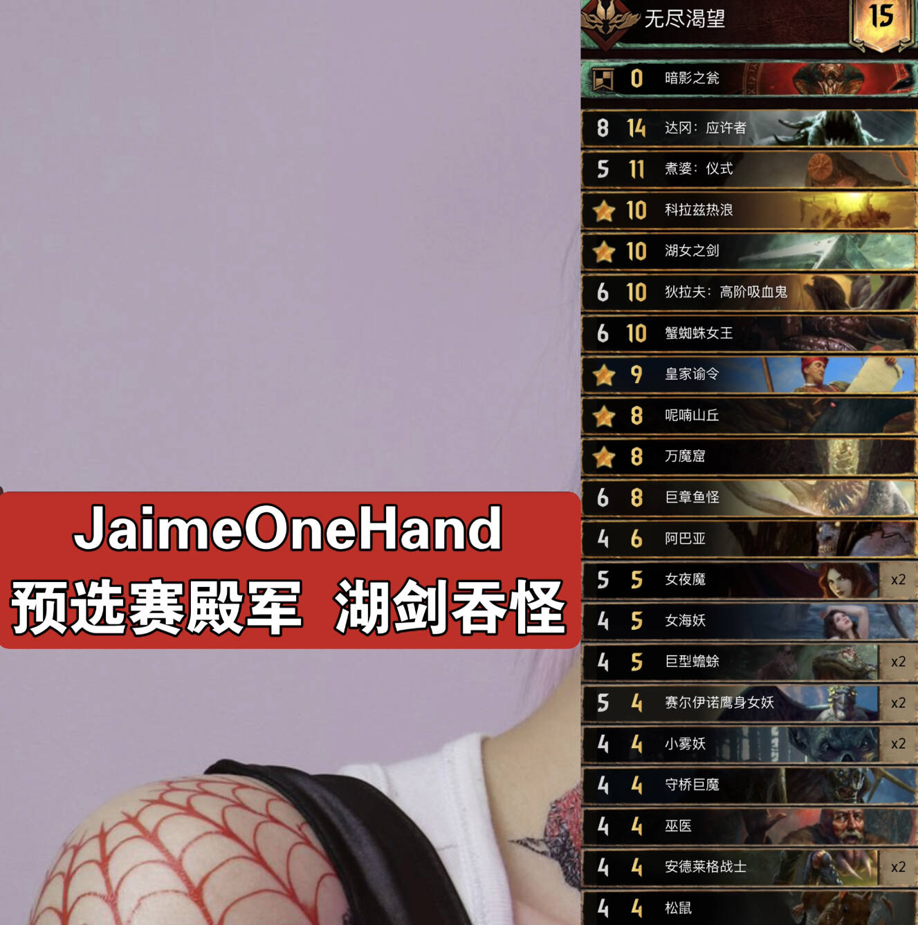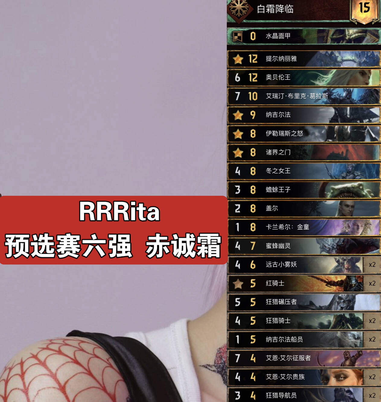 遗愿达冈就是用达冈:应许者与煮婆:仪式在开局进行施压伴随着较少的引擎和控制手段从而达到平卡赢的目的,开局的大点数爆点和之后各种遗愿效果让对手无法在长局跟上。而霜怪卡组拥有强大而可怕的引擎牌,并且在冬之女王跳出来时是产生巨大节奏。所以当进入长局时霜怪平卡赢下r1就很轻松。此外盲目进入长局r1并非对这类卡组完全有利,就像白霜天气本身就是个引擎——