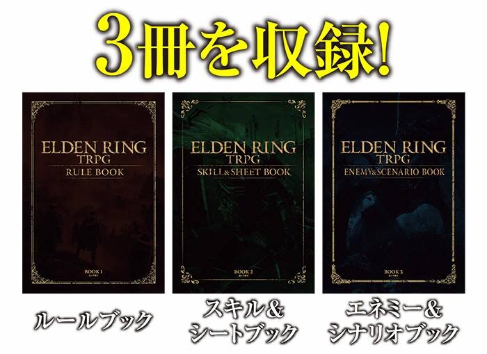 《艾尔登法环TRPG》由《黑暗之魂TRGP》游戏设计师加藤博纪负责开发,游戏人数约为一个游戏管理员+二到四名玩家。为了重现原著的世界观,《艾尔登法环TRPG》收录了武器防具700多种,250多种玩家技能、50多种骨灰,270多种敌人的数据。