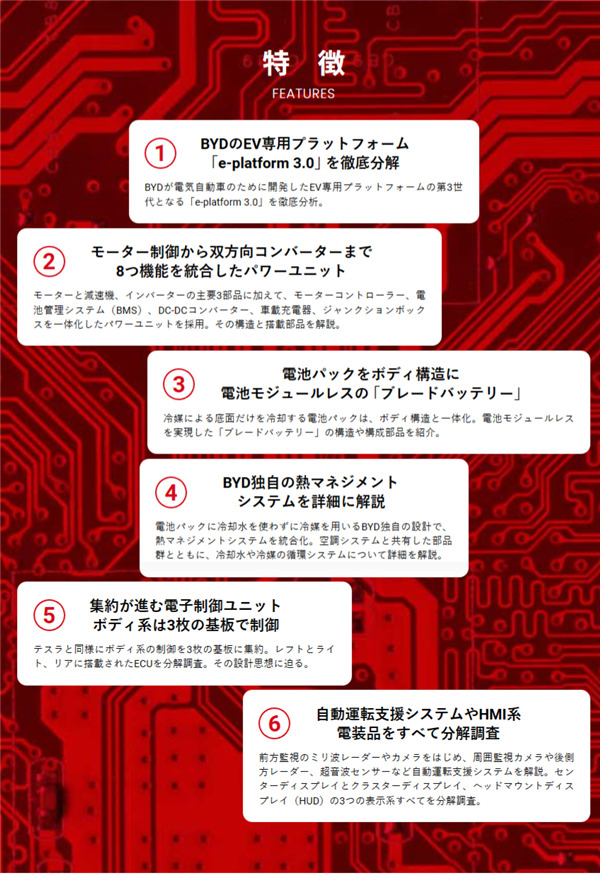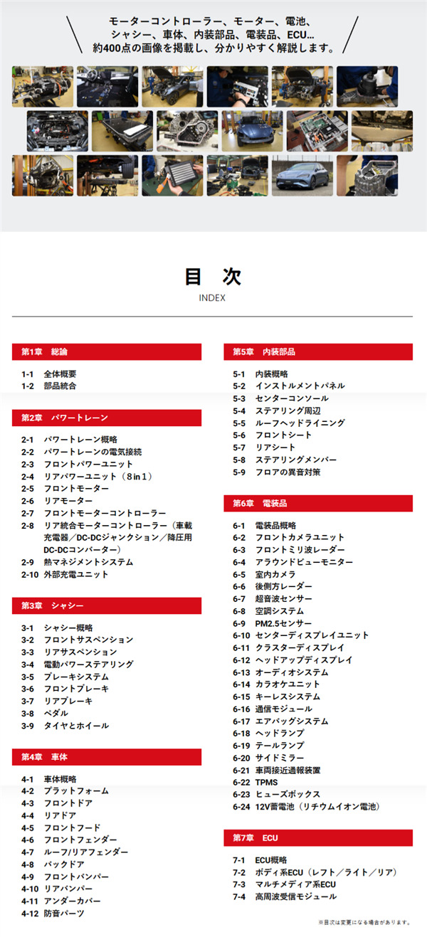 日经BT研究所对中国比亚迪的电动汽车(EV) 海豹进行了分解调查。最大的特点是除了电机、减速机、减速机三大主要部件外,还集成了电机控制器、电池管理系统(BMS)、DC-DC转换器、车载充电器、接线盒的"8合1"和逆变器。