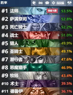 综合以上这3个原因,近些天竞技场环境就是基于它们缓慢变化,从最开始的萨满战士依然强势到慢慢的法师抬头再到登顶,花了1周时间,所以说环境这个东西真的是牵一发而动全身的,可能镂骨恶犬砍一刀出现率,快攻又多了,法师就又会降下去一点。