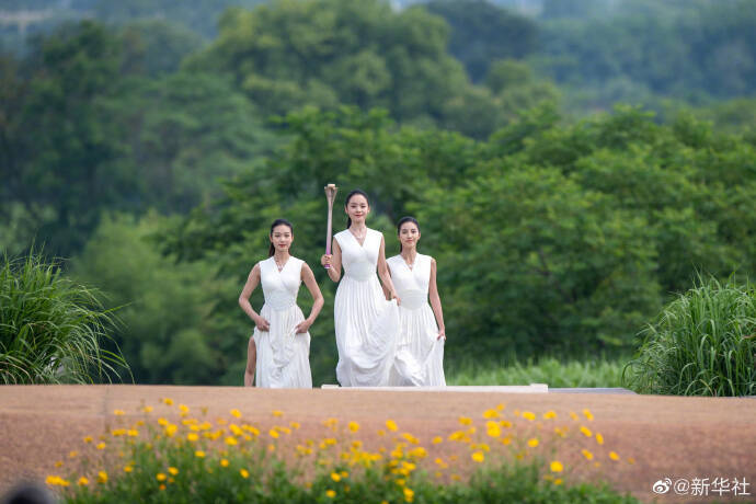 6月15日上午,杭州第19届亚运会火种在杭州良渚古城遗址公园大莫角山成功采集。