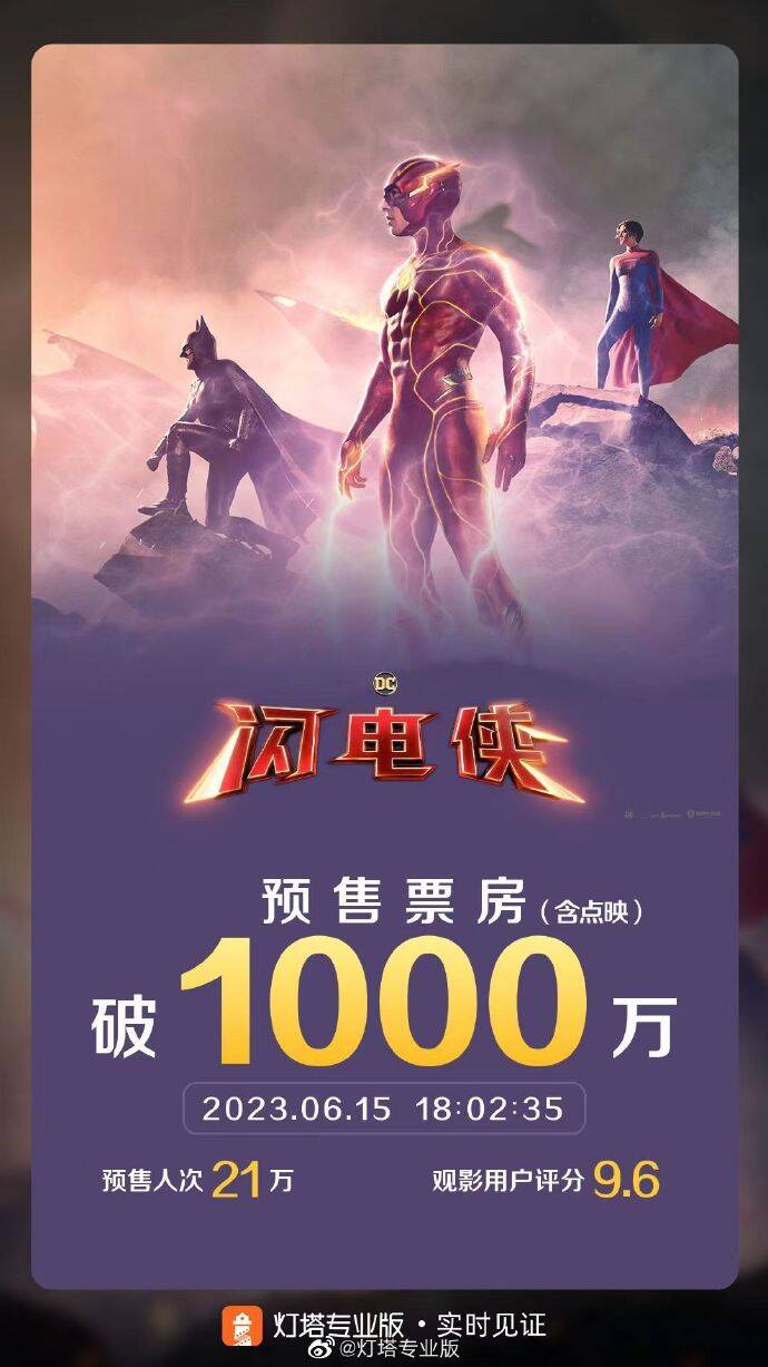 据灯塔专业版实时数据,截至6月15日18时2分,影片《闪电侠》预售总票房(含点映)突破1000万。