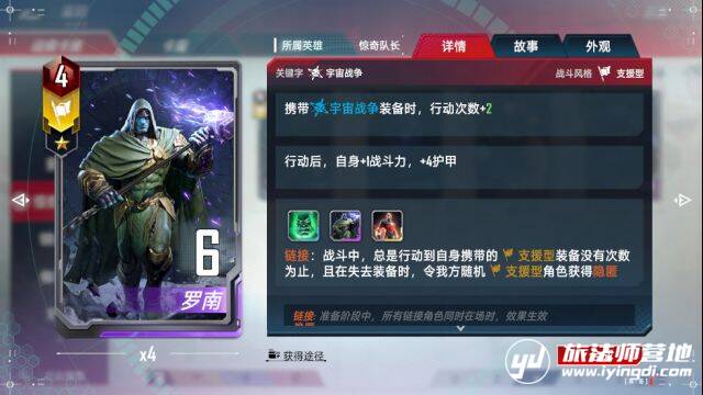 罗南:链接核心位,无情武器破坏机器,装备任何武器都能多动直至武器次数使用完毕。配合玛威尔链接效果装备使用次数+2能行动更多次。这里提几个非常适合的武器,蜘蛛滑翔翼、超棒的火箭发射器、靶眼飞刀、忍者飞镖、超智机构充能导弹、暗夜长矛。