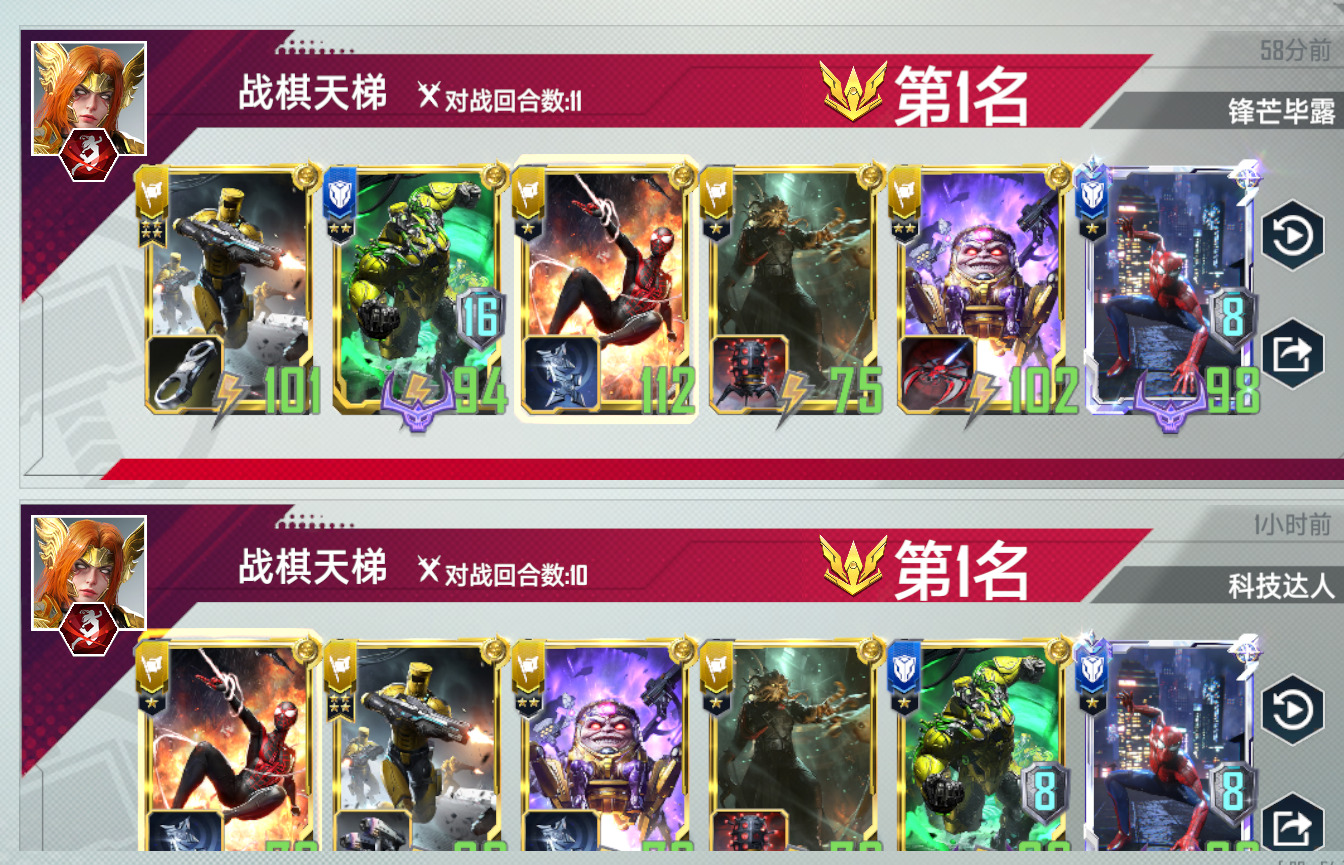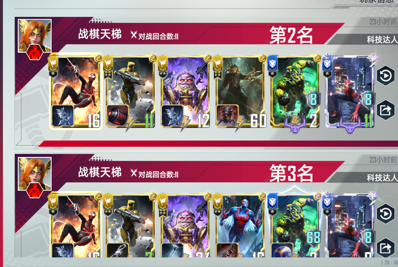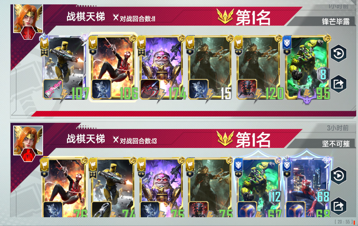 最终常规阵容站位:1号小黄人带手铐。2号迈尔斯带飞镖。3.4号摩多可带飞镖。3.4功能性单位如蜂巢带致狂。2099带滑翔翼。5号生化怪。6号蜘蛛侠。