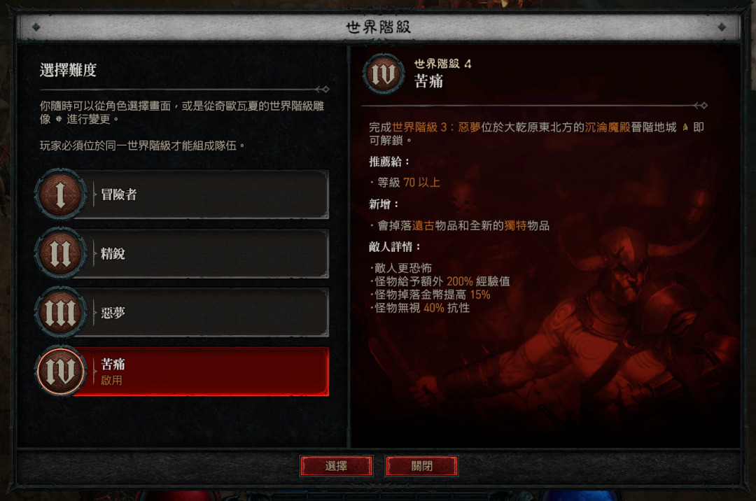 就目前的情况而言,游戏在世界难度4之后才真正开始,游戏的核心体验,比如毕业的先祖装备、高等级梦魇地下城、最终副本,都只有在世界4出现。