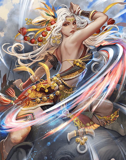 祝融是孟获的妻子,是《三国演义》中首个上战场的女性,她的专属武器是丈八长镖。小说记载:祝融夫人背插五口飞刀,手挺丈八长标。飞镖作为武侠中的武器非常神秘,对使用者要求非常高,命中关键位置一击毙命。因此,丈八长镖还挺适合游戏的。