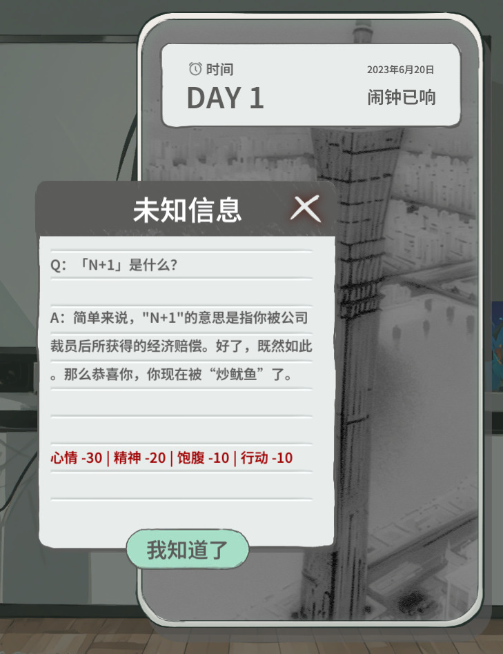 看名字就能知道,这款游戏的主题非常贴近许多人的现实生活。根据介绍,制作人以自己被公司解雇的经历为基础,创造了这款自称为「超现实模拟游戏」的作品。
