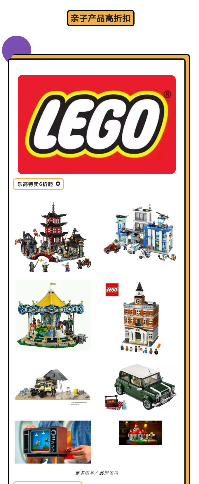 乐高产品全场六折起!!