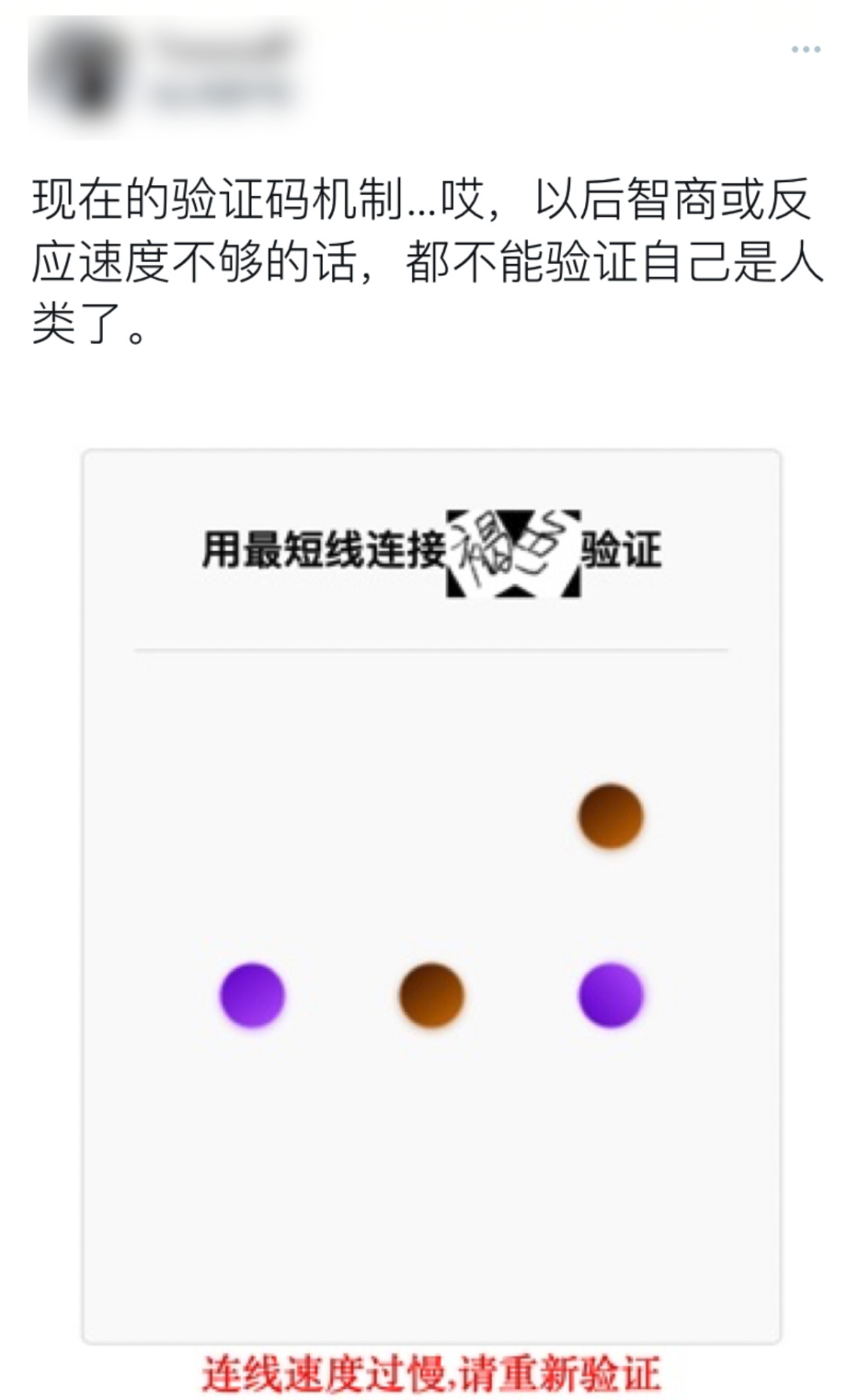 还有人遇到一个验证码,让他用最短线连接褐色。