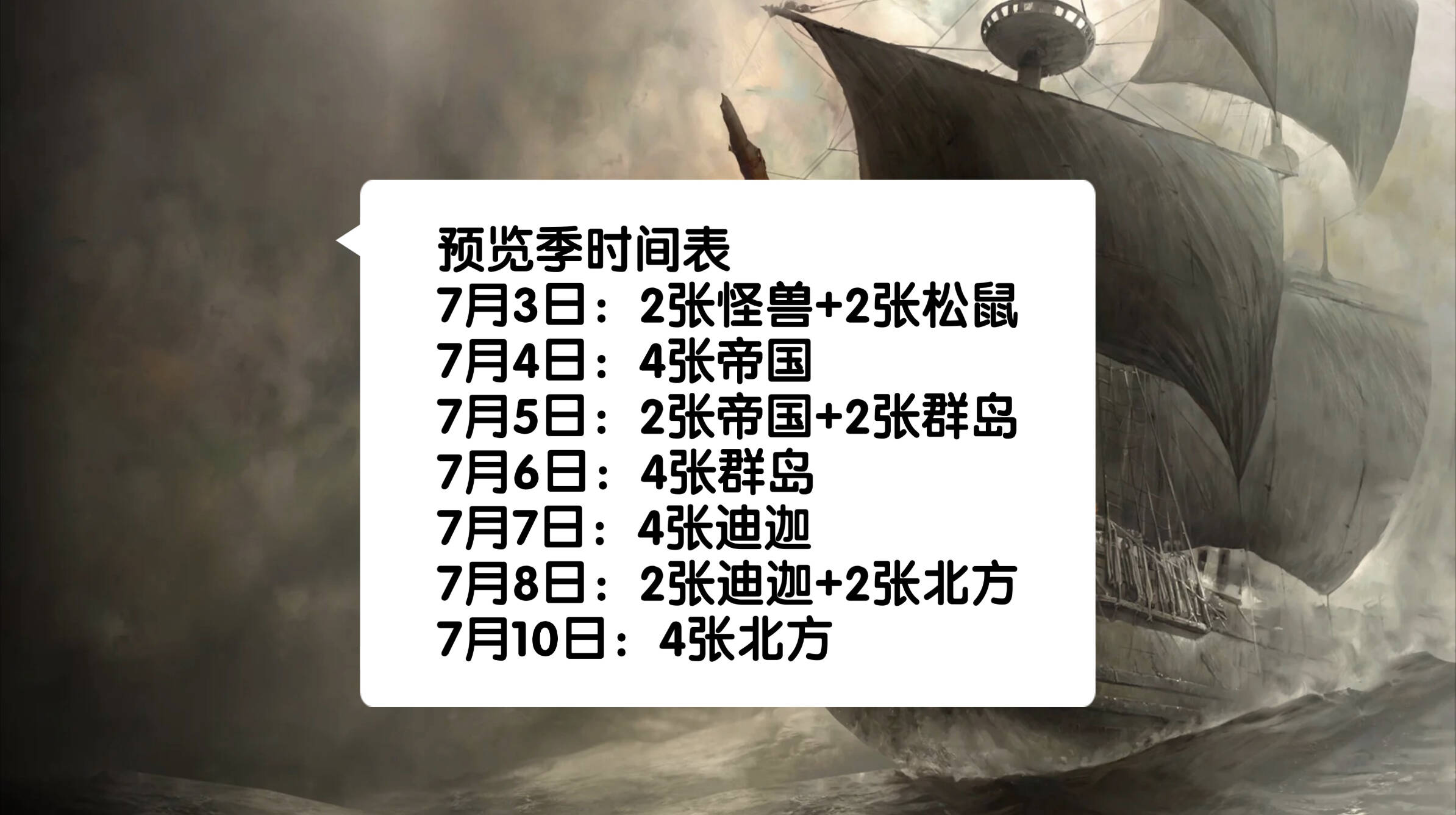 官方的8张新卡已经发布完毕,本次“潮升”扩展将带来36张新卡。每个阵营6张,稀有度分布为:2橙2紫1蓝1白。社群预览季将从今晚11点开始, 7月3-10日每天23:00~24:30由知名昆特主播公布4张新卡,新卡版本预计7月11日上线。