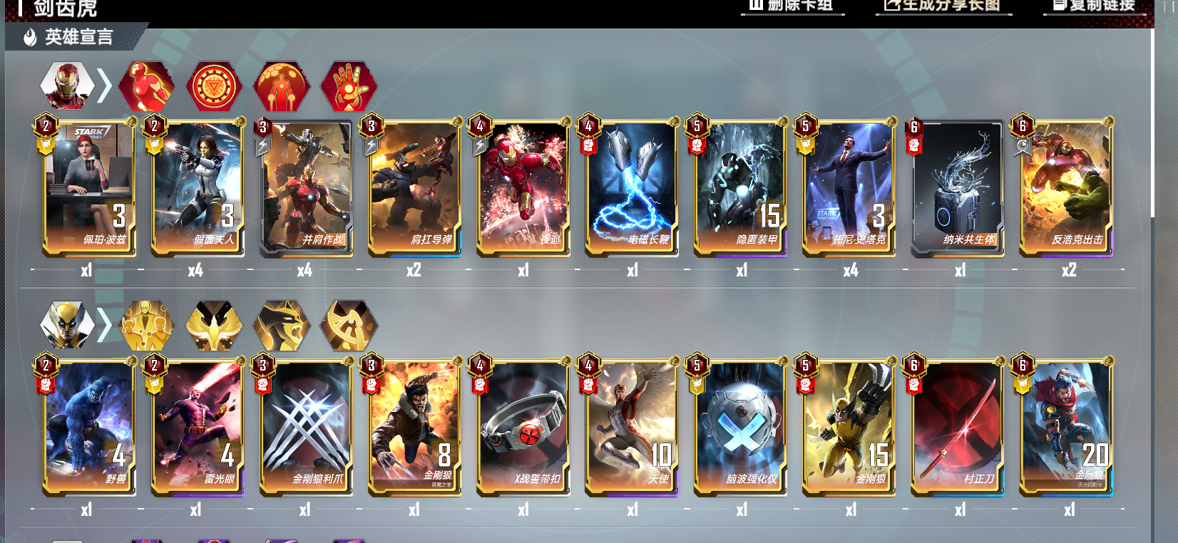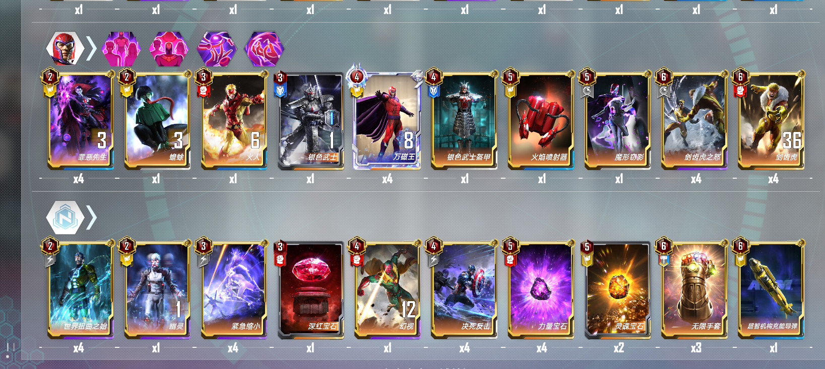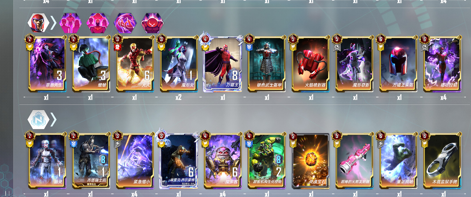 希望大家一起踊跃开发,感觉这4个链接还是有点意思得。尤其目前没啥强度得夜行者与剑齿虎。真的好玩,但目前没开发出强力思路,问题在于万磁王与金钢狼得捆绑链接,实在是巨难受,2个英雄捆绑后开发思路受限。前期思路也受限。