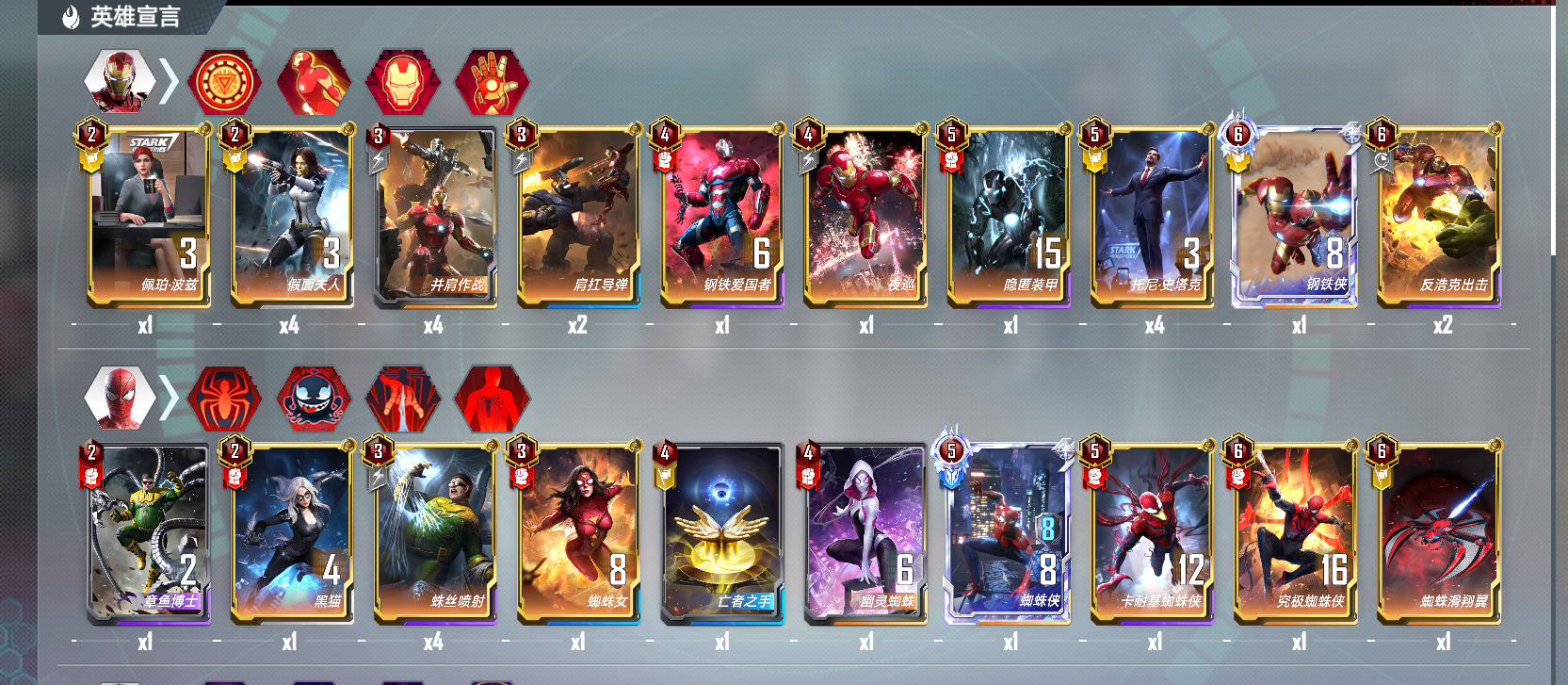 运营思路:基本以我上赛季发得小黄人思路运营。卡3跳5.利用好靶眼与改良,经济上起到优势,前期能靠玛丽苟活,但玛丽只能坚挺到5~6回合,这时候蜘蛛发力,势必要马上成型链接,