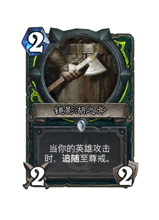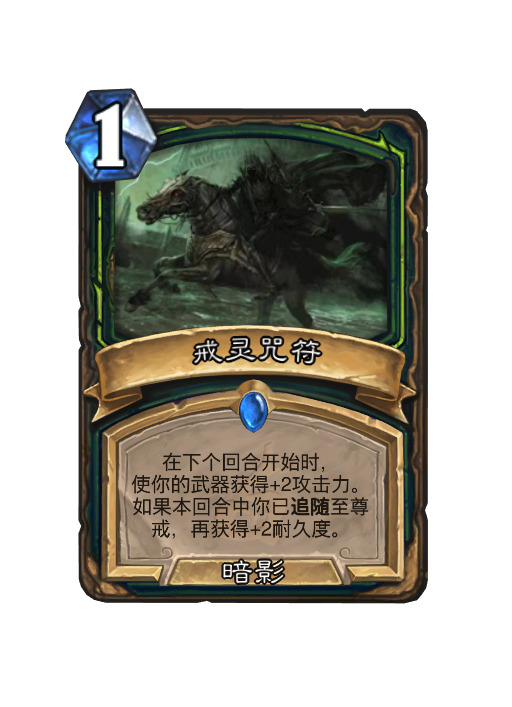 *贴附在友方随从身上后,它获得相应关键词和卡牌描述,获得等同于武器攻击力和耐久度的攻击力和生命值。与耐久度相关的卡牌描述将会无效化。