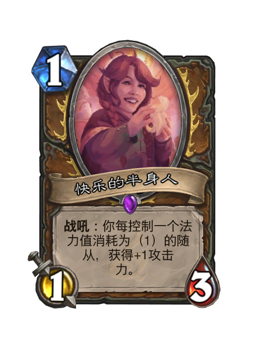 *“快乐的半身人”的战吼效果在“远征者莱戈拉斯”的效果之前触发。举个例子:如果你场上有“远征者莱戈拉斯”和5个法力值消耗为(1)的随从,你就能获得一个6/6的“快乐的半身人”。所以请放心快乐。
